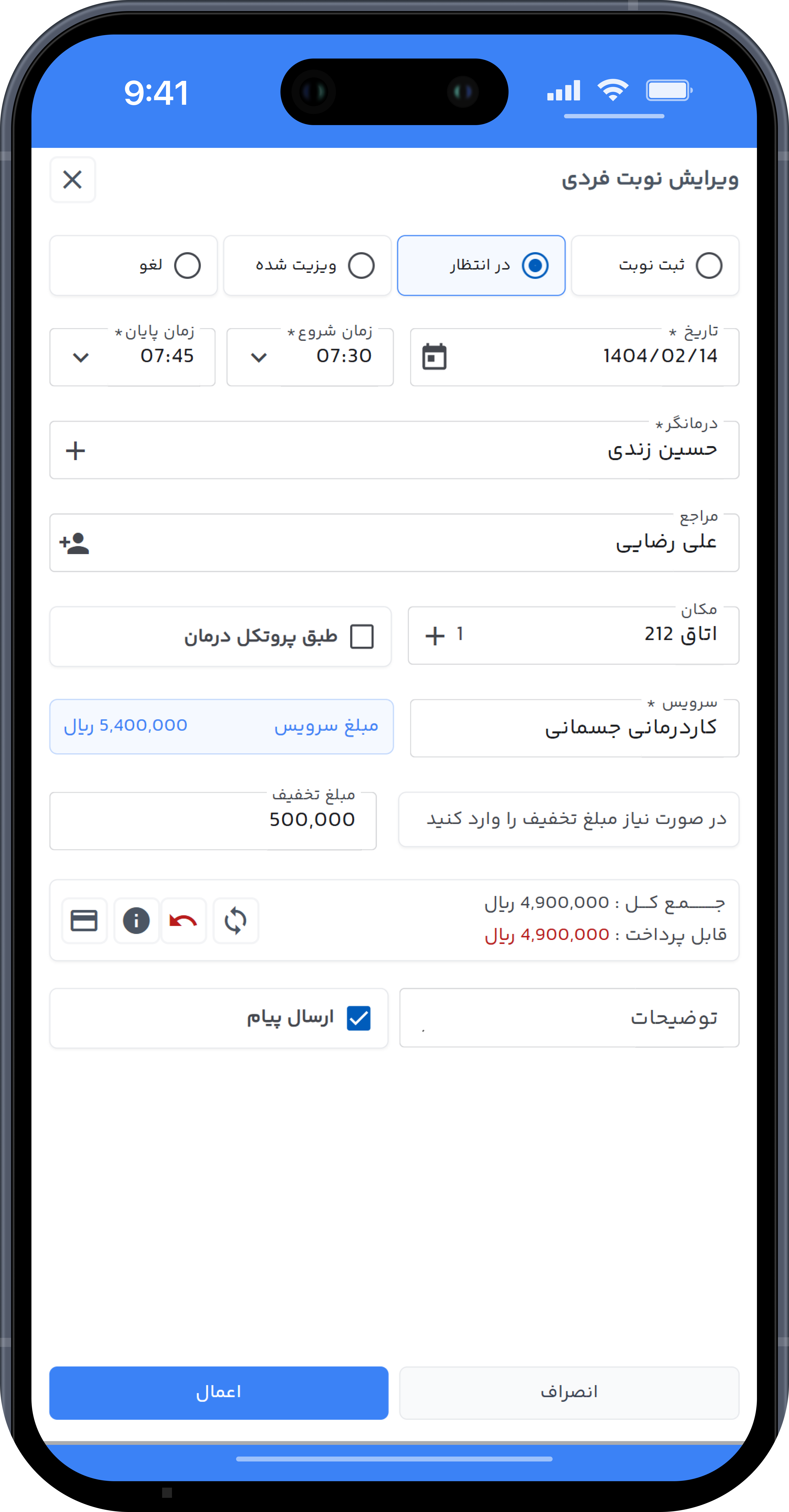 ثبت پرداخت ها، سهم درمانگر و مدیریت هزینه ها به سادگی